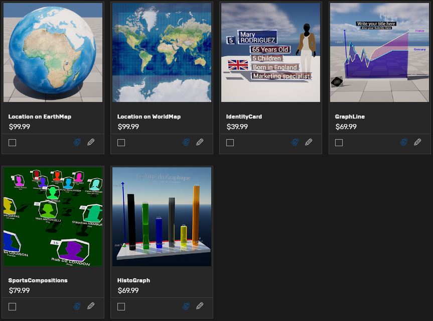 Plusieurs assets sont disponibles sur le marketplace d'Unreal Engine.